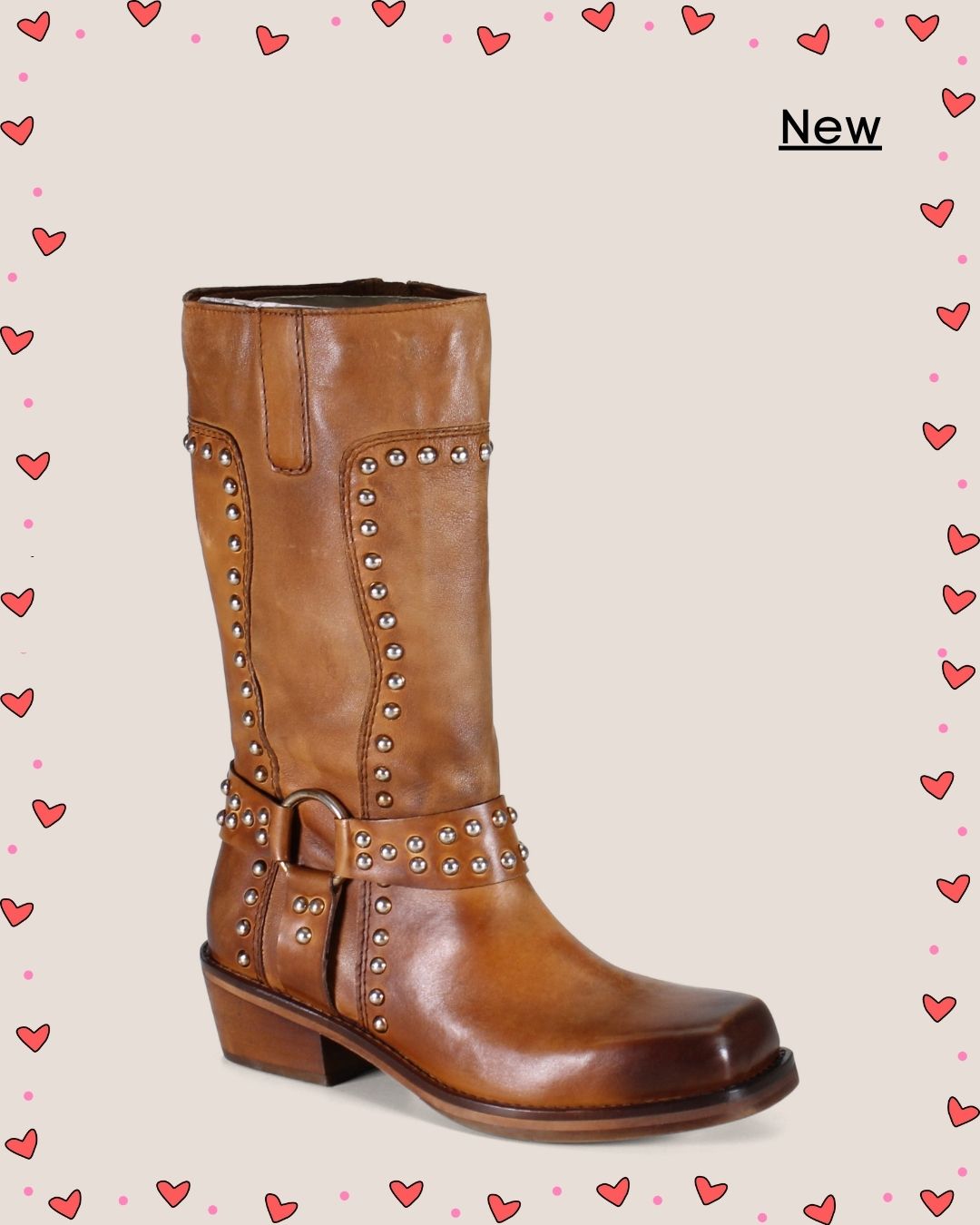 The VAL UABLE by Diba True is a mid-calf leather boot that blends Western-inspired charm with modern sophistication. Crafted from genuine leather with rich character, this standout style features studded details and harness accents for an effortlessly edgy look. The bumped square toe adds a vintage touch, while the 1.75-inch stacked block heel provides just the right amount of lift for all-day comfort. Designed with an inside zip closure for easy wear, this boot is perfect for pairing with denim, dresses, or boho-inspired looks.
